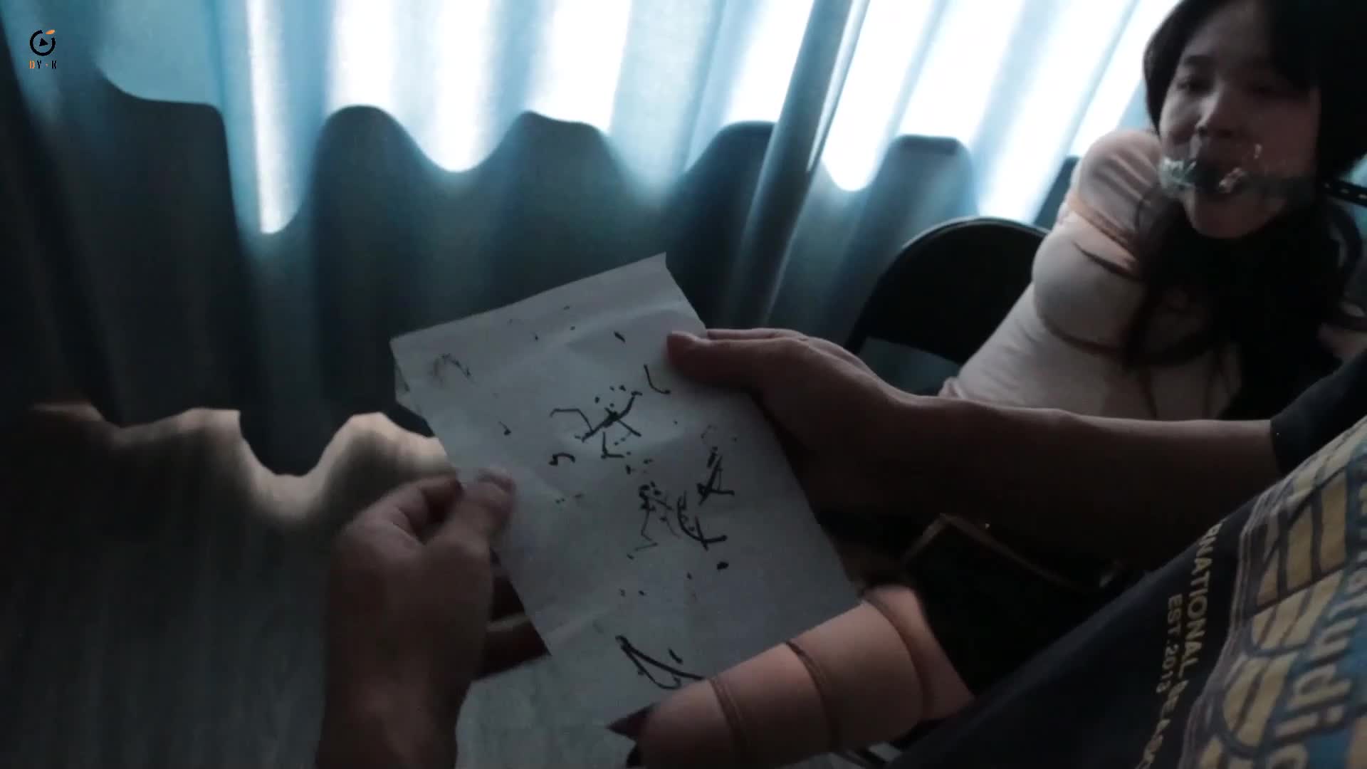 A custom shoot of stocking gag, hooding, and bondage training. 1. Liang Jiang starts wearing two pairs of stockings, playing with them at home, then slowly removes one, covers her eyes, ties a knot in front, removes the mask, puts a short stocking on her tongue, and stuffs the knot into her mouth. Then she uses another stocking to cover her mouth and nose, tying it at the back. 2. Bei Bei enters, sees Liang Jiang playing with the stockings, and since Liang Jiang can't see, she sneaks up, pins her to the bed, ties her hands with a stocking, uses a short stocking to prevent escape, then binds her with rope, unties the stocking from her mouth, removes her stockings, stuffs them in her mouth, covers her mouth with a stocking, puts a stocking over her head, and ties it with the stocking legs. 3. She binds her legs in a folded leg tie, secures a vibrator, and Liang Jiang wriggles and struggles before the end.