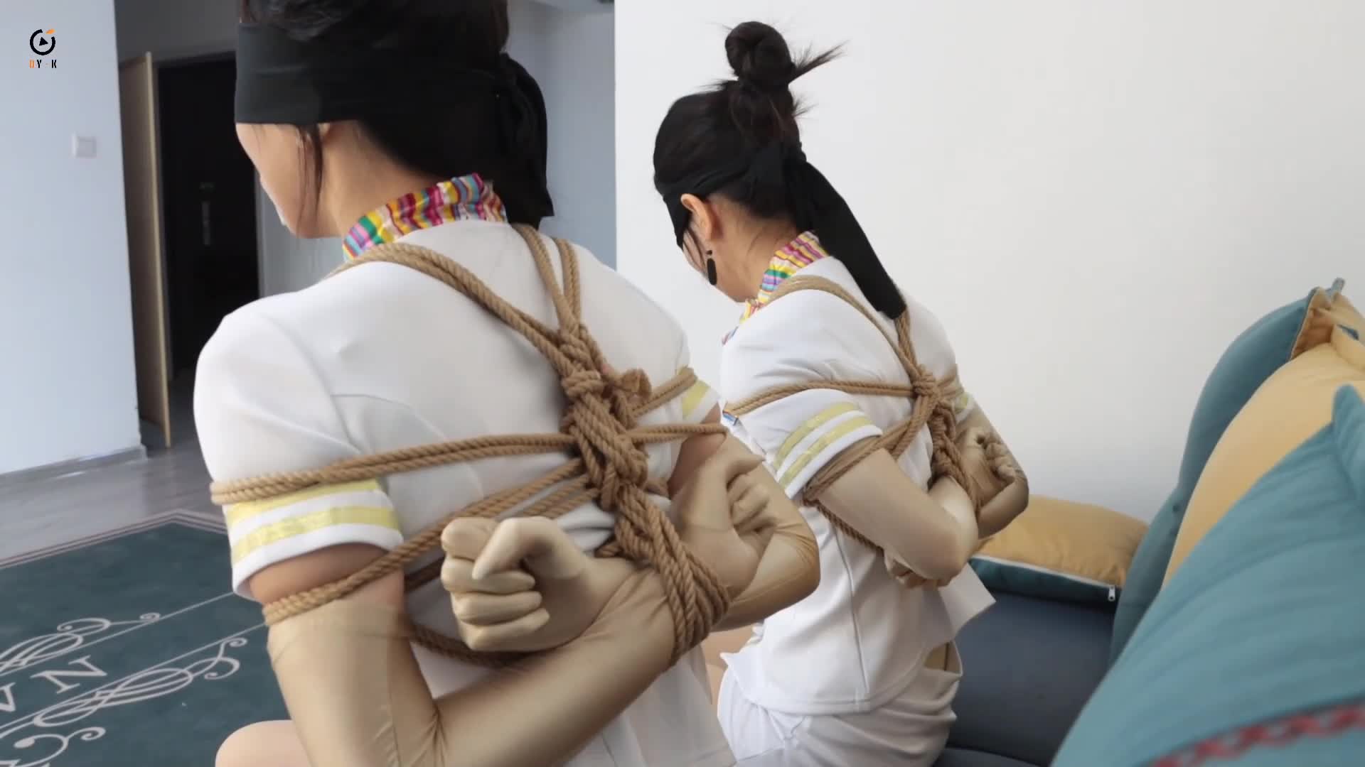 Aoao has her mouth and eyes covered, struggles tied to the bed, and is finally wrapped in a blanket!