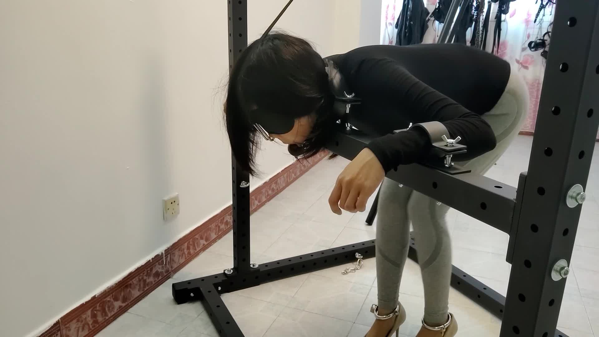 Little Meng classmate is bound and restrained with a remote control massage board placed underneath her. A suffocation hood is put over her head, and she is left there, watching the slave struggle, step by step approaching the limit of suffocation...