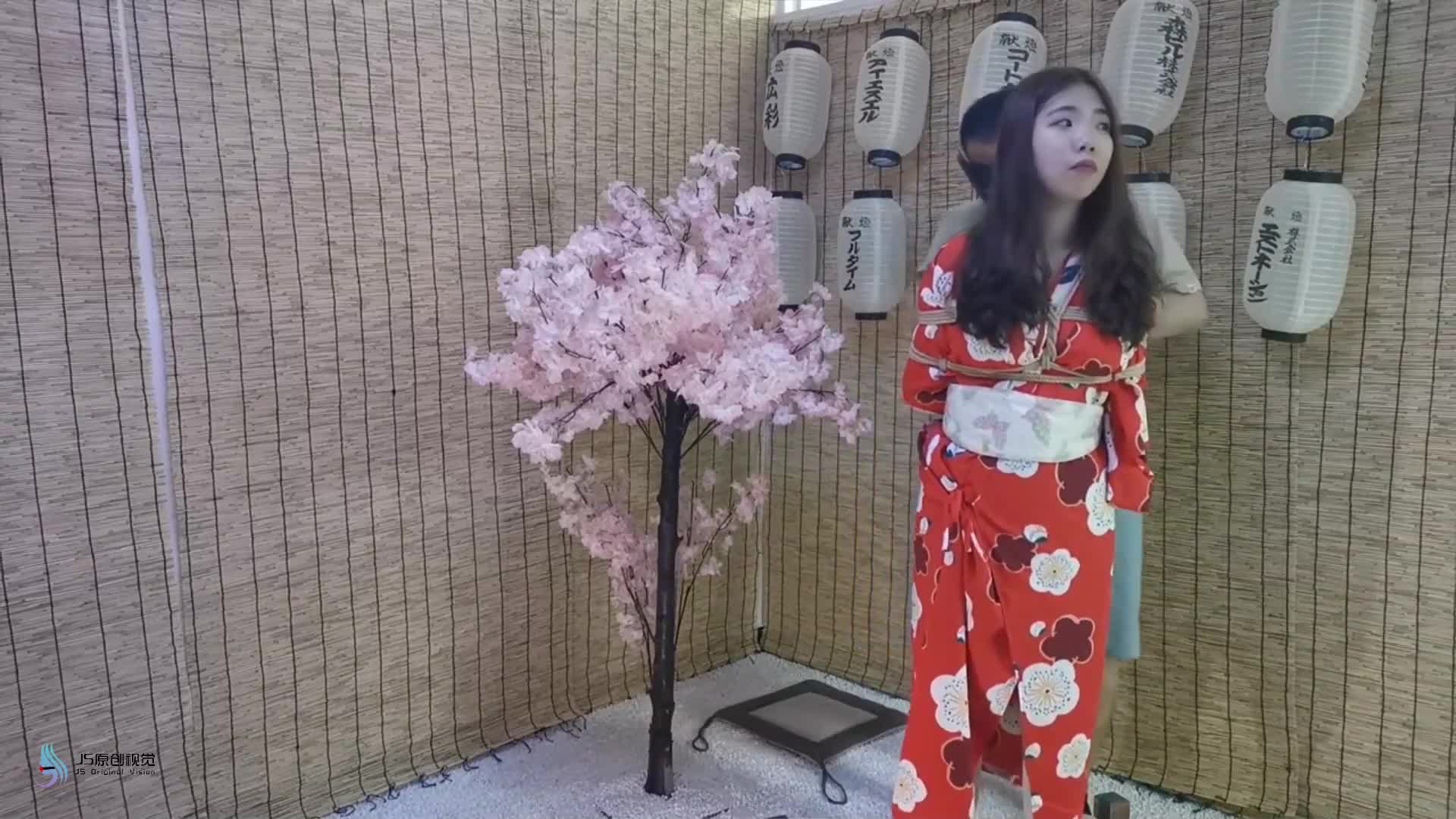 JS original Japanese style kimono bondage, white stockings ball tie, ball gag, blindfold.