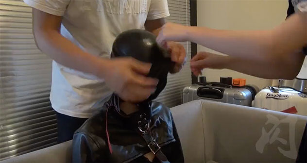 Latex suffocation hood torture