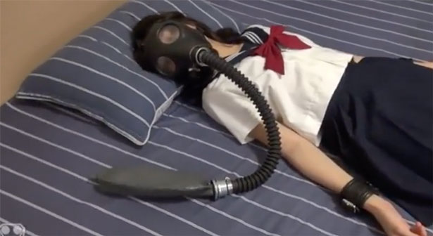 Suffocation Special, a twin-tailed little loli in white stockings experiences various suffocation devices, gas mask, leather hood, vacuum bag, floating in ecstasy! Extreme struggling
