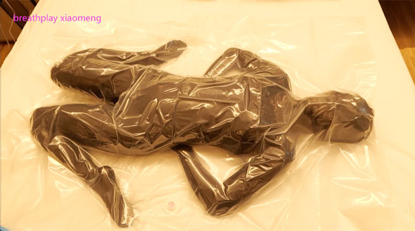 In May 2022, a vacuum scene was set up. XiaoMeng is inside a vacuum bag, experiencing breath play.