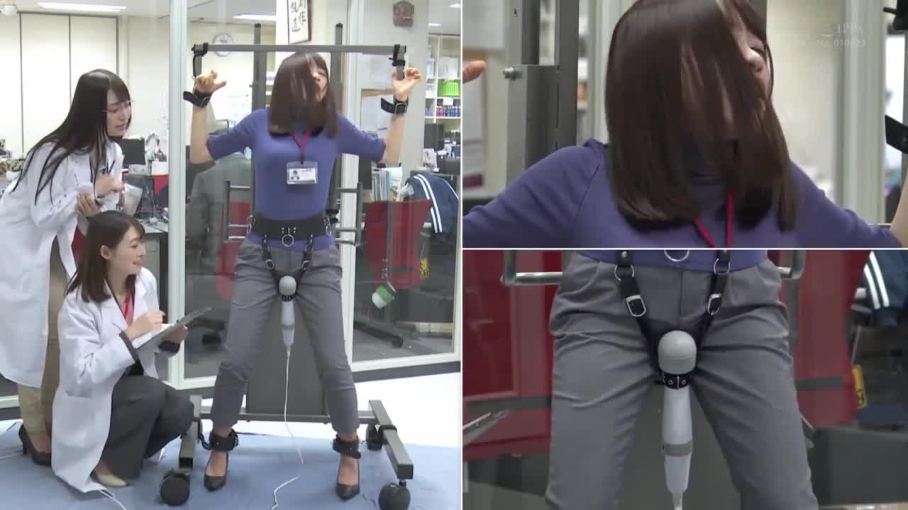 At the request of fans, wearing a flight attendant's pantyhose uniform, electrostimulation, wax play, intense forced orgasm, latex breath control mask leading to unconsciousness and incontinence