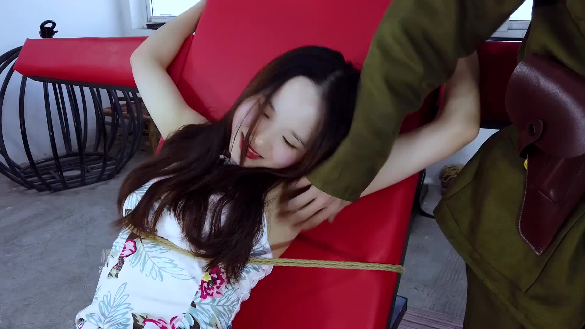 Huasu is bound in a short cheongsam with a harness gag, drooling! Massage