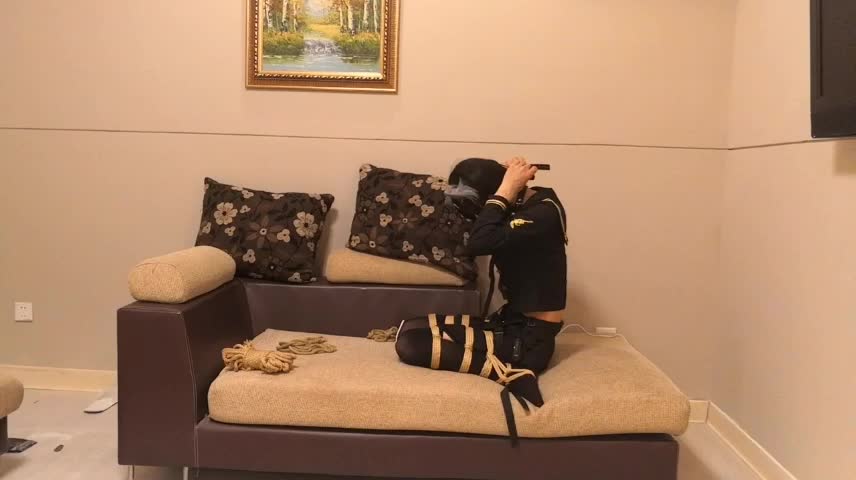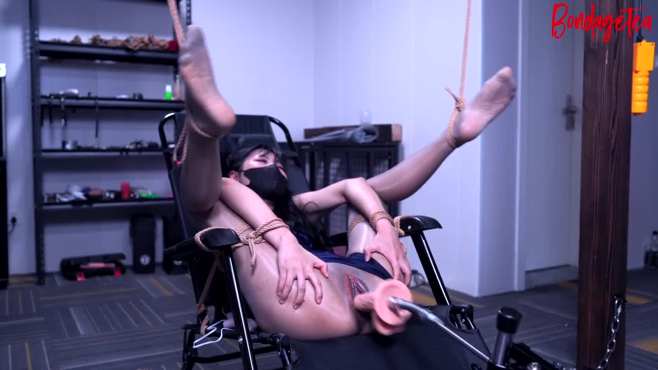 Tied and bound with a fucking machine for torment, the submissive's hands have nowhere to rest but on her own thighs to alleviate the stimulation from the machine. Unable to resist, all she could do was this, left in this state for a long time.