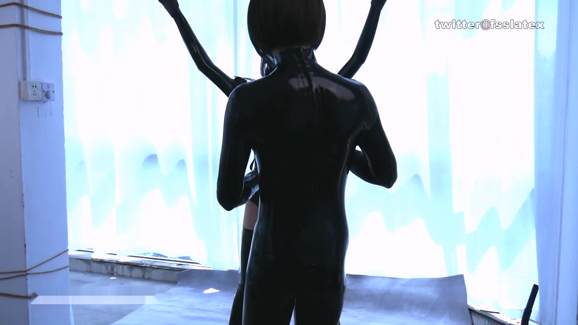Cute training of a latex female slave, machine insertion and placement
