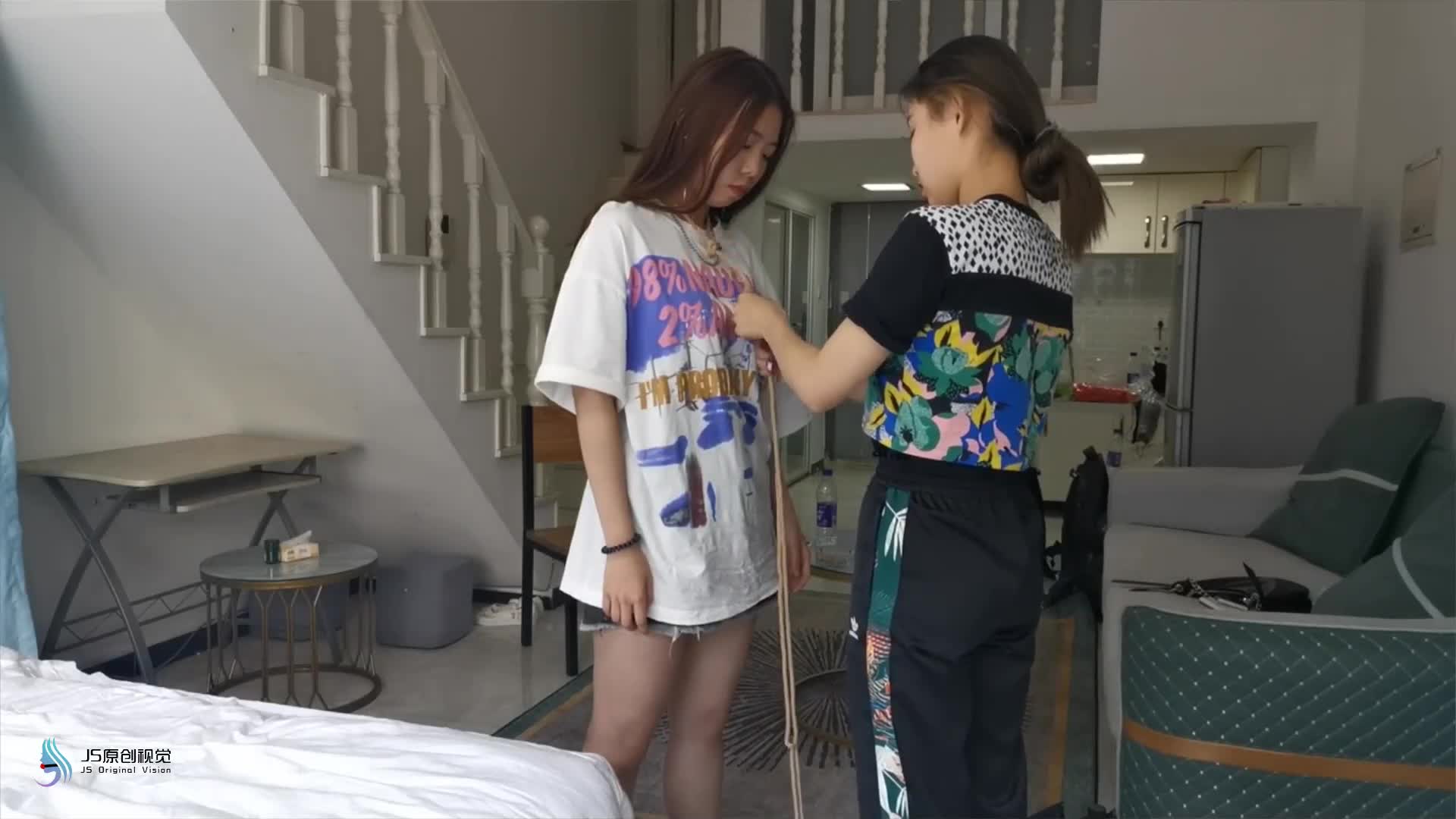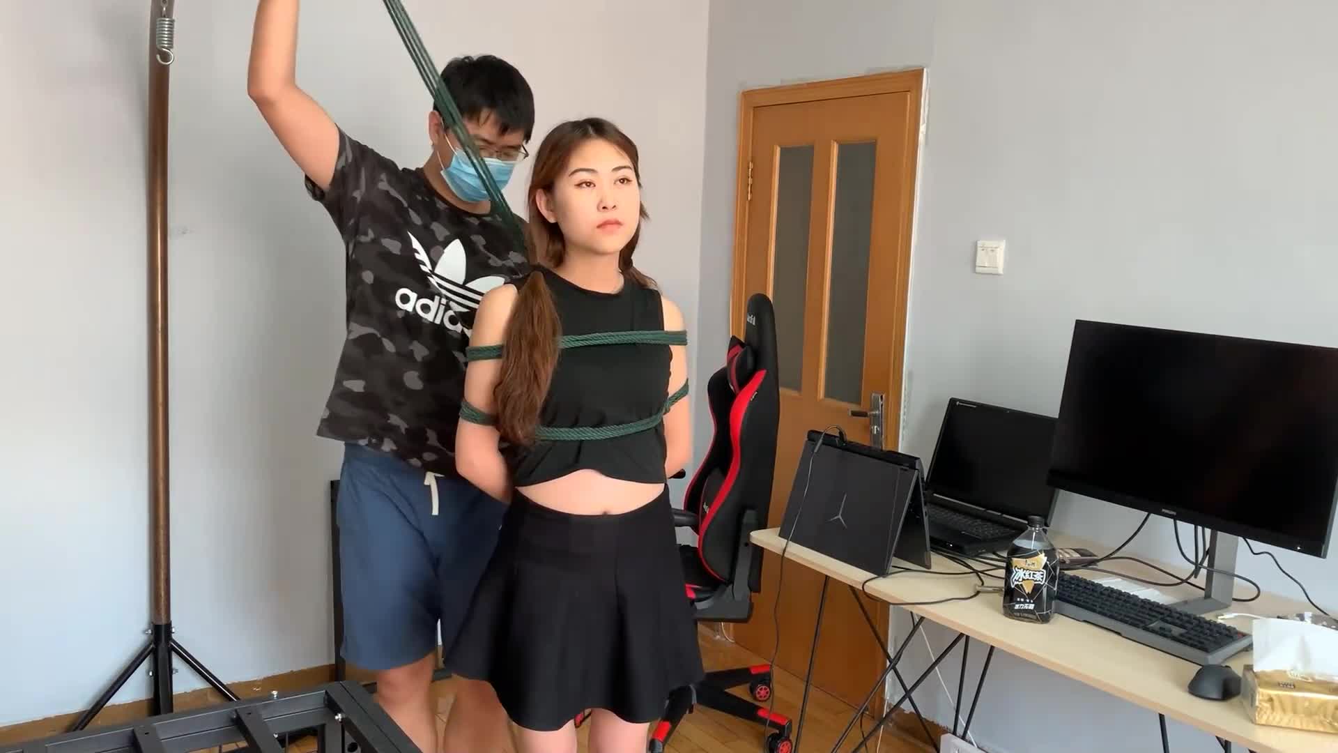 During the epidemic, Xiao 0 was bored with nothing to do, so she tied up another girl.