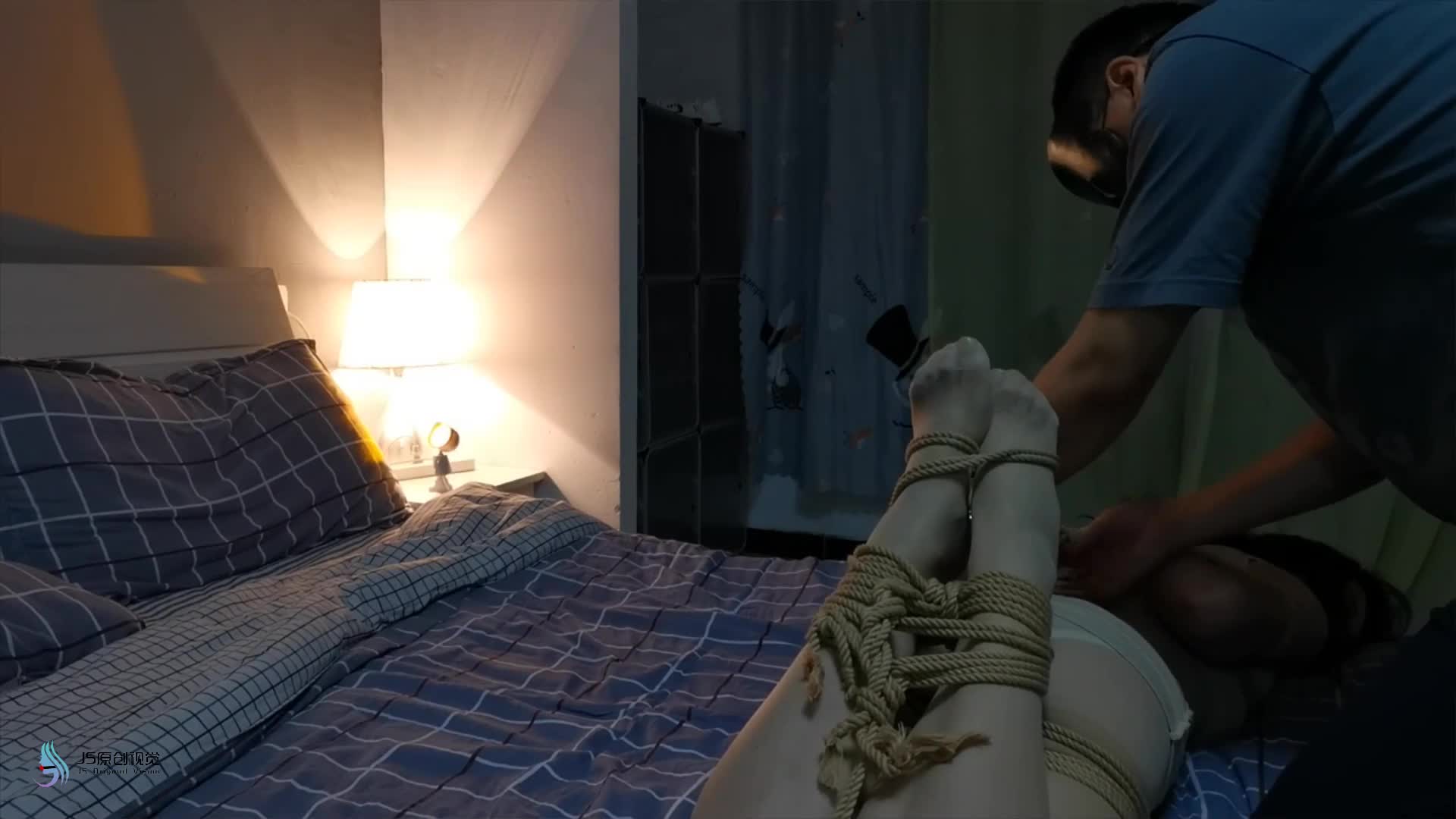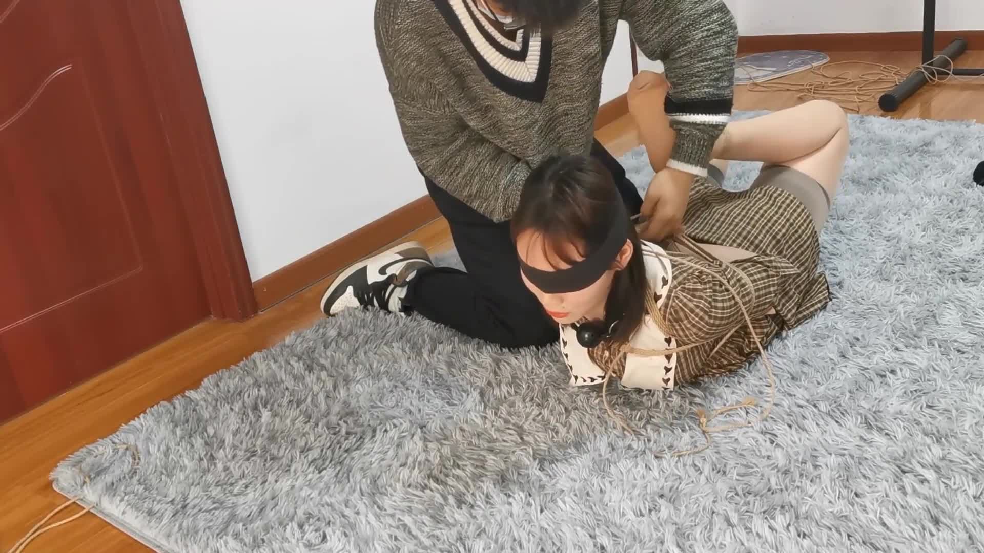 De Yi Ke custom shoot Shen Xin being tied up and gagged with gray tape indoors