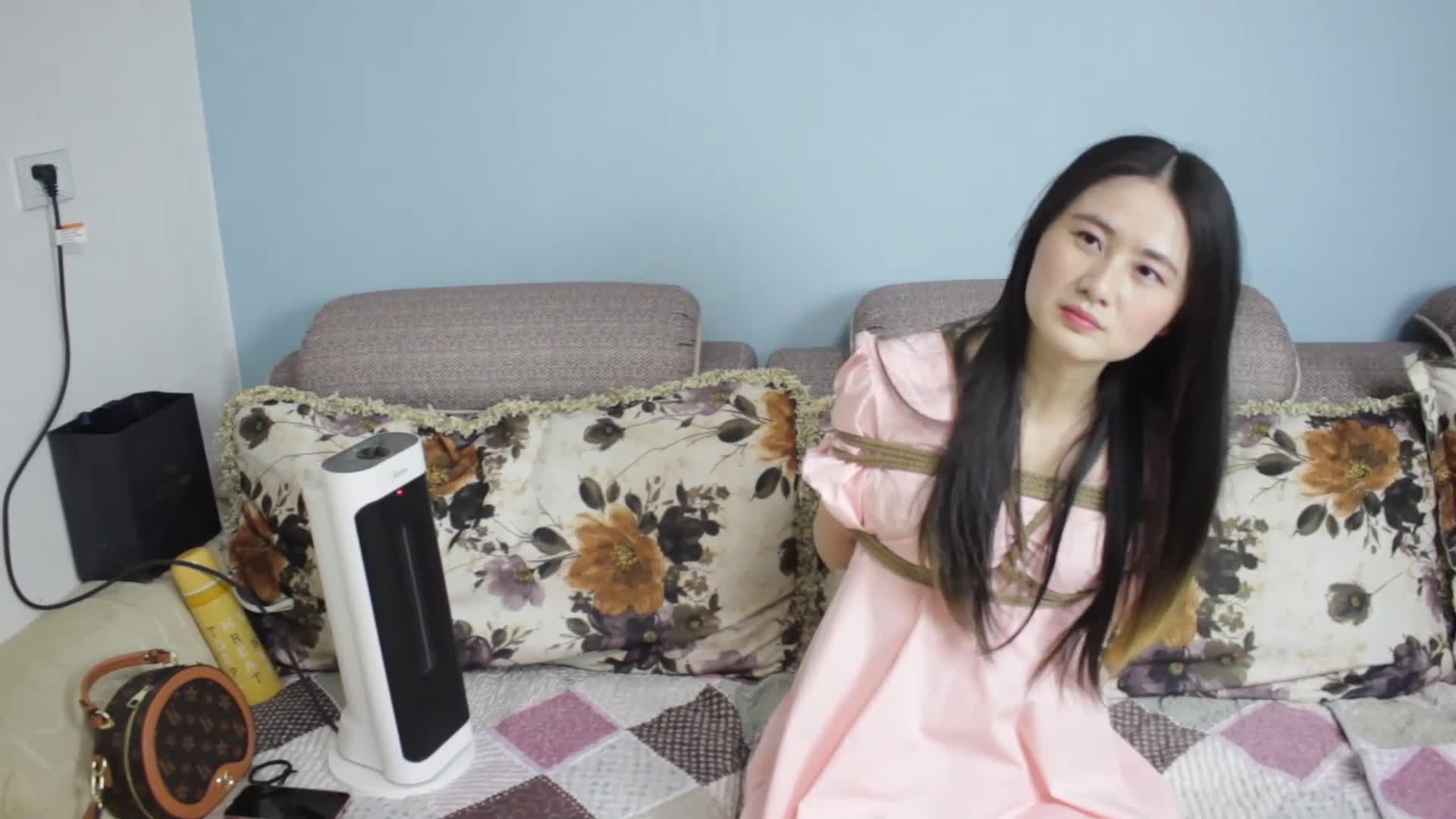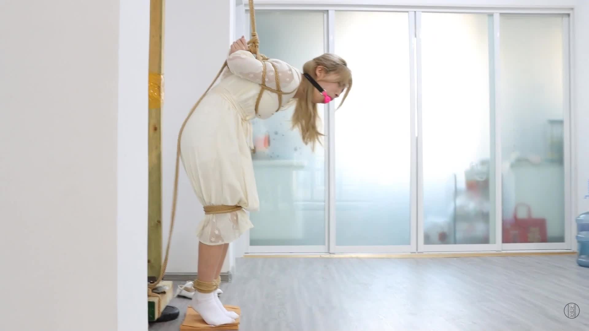 Sexy Zixuan's Struggle in Fishnet Stockings Long Dress Hogtie