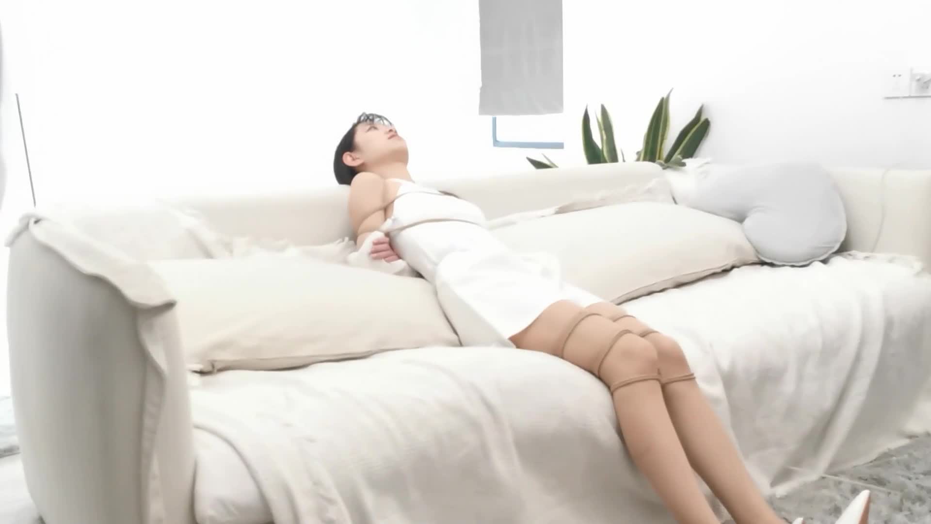 Huxian Girl, a beautiful girl showing various binding methods and struggling in tk, wearing a white dress, flesh-colored stockings, and high heels, Xiao Yue sister's outfit