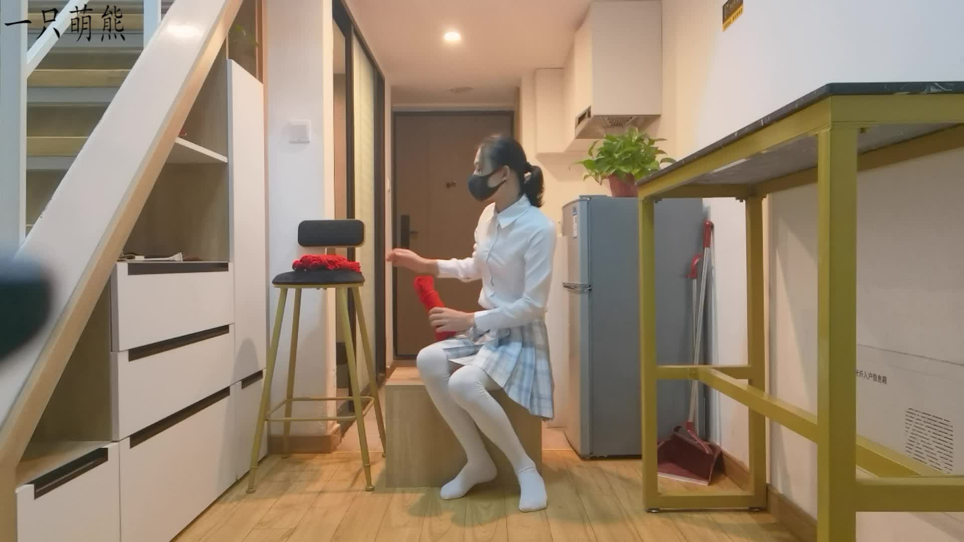 In this adorable scene, we showcase several cute self-tying hand methods in a hogtie suspension. The female lead is wearing a cute skirt, tying herself with red rope, presenting a gentle and adorable atmosphere.