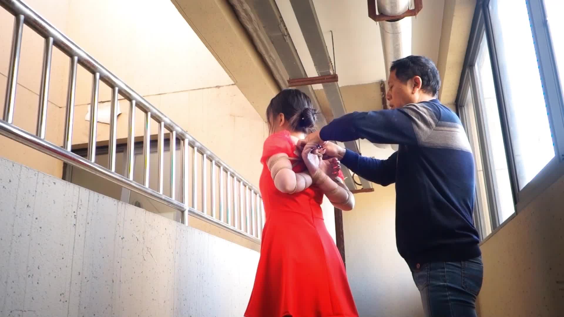 A red dress straight body bondage