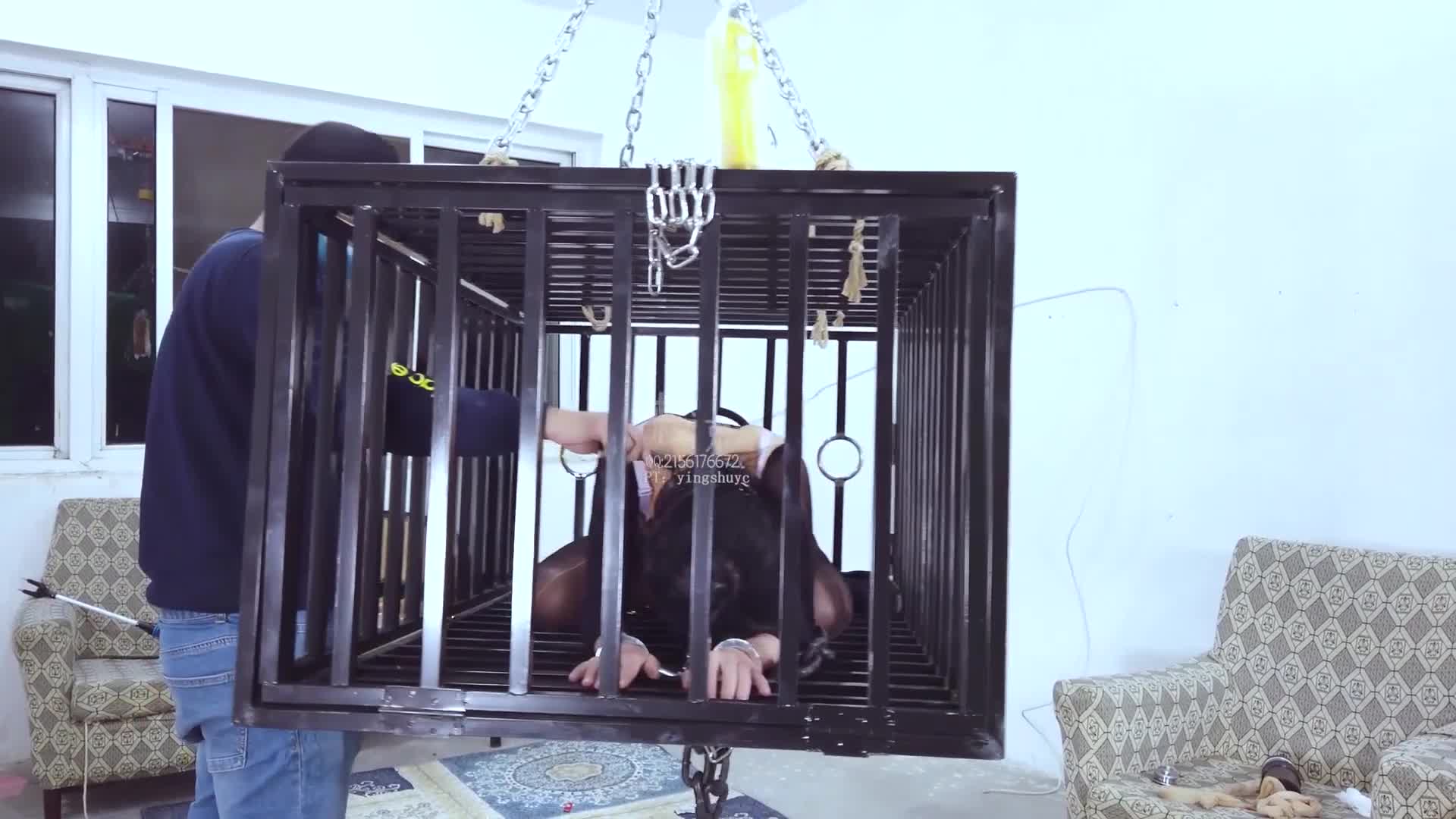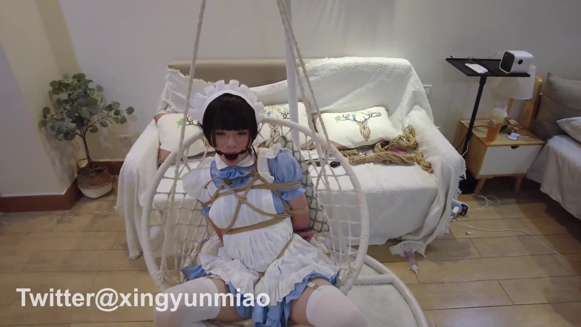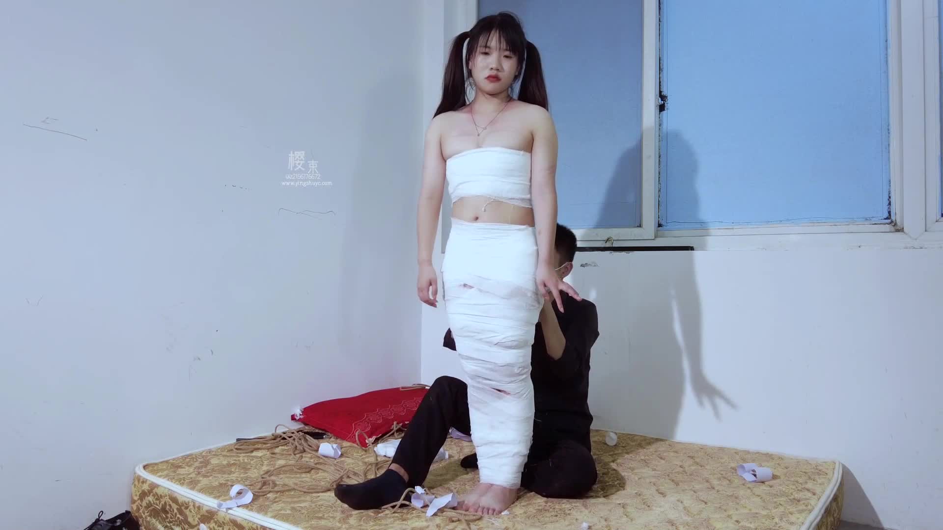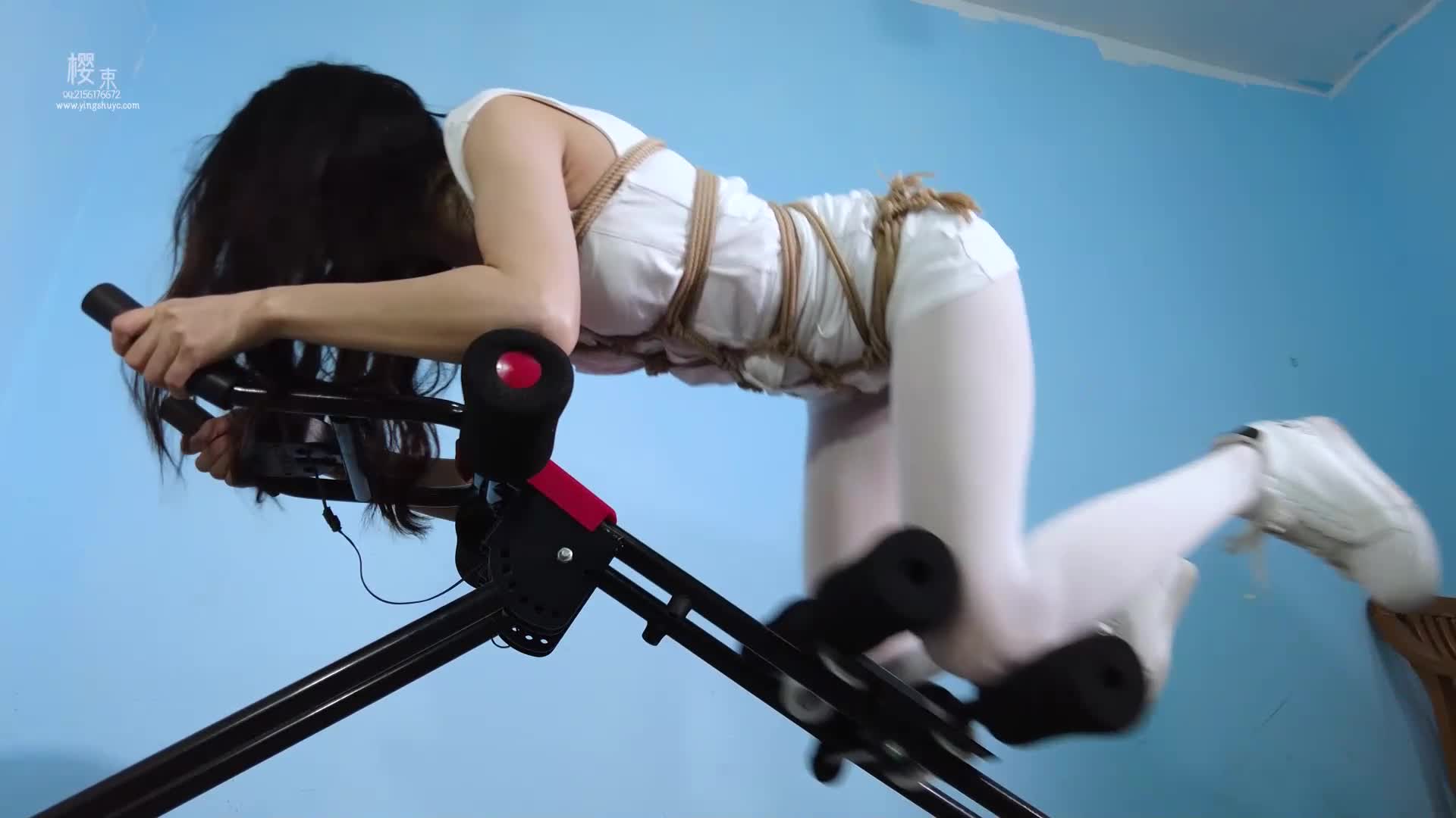 Gugu Jing, Chacha in white stockings, hardcore V-shaped extreme hogtie!