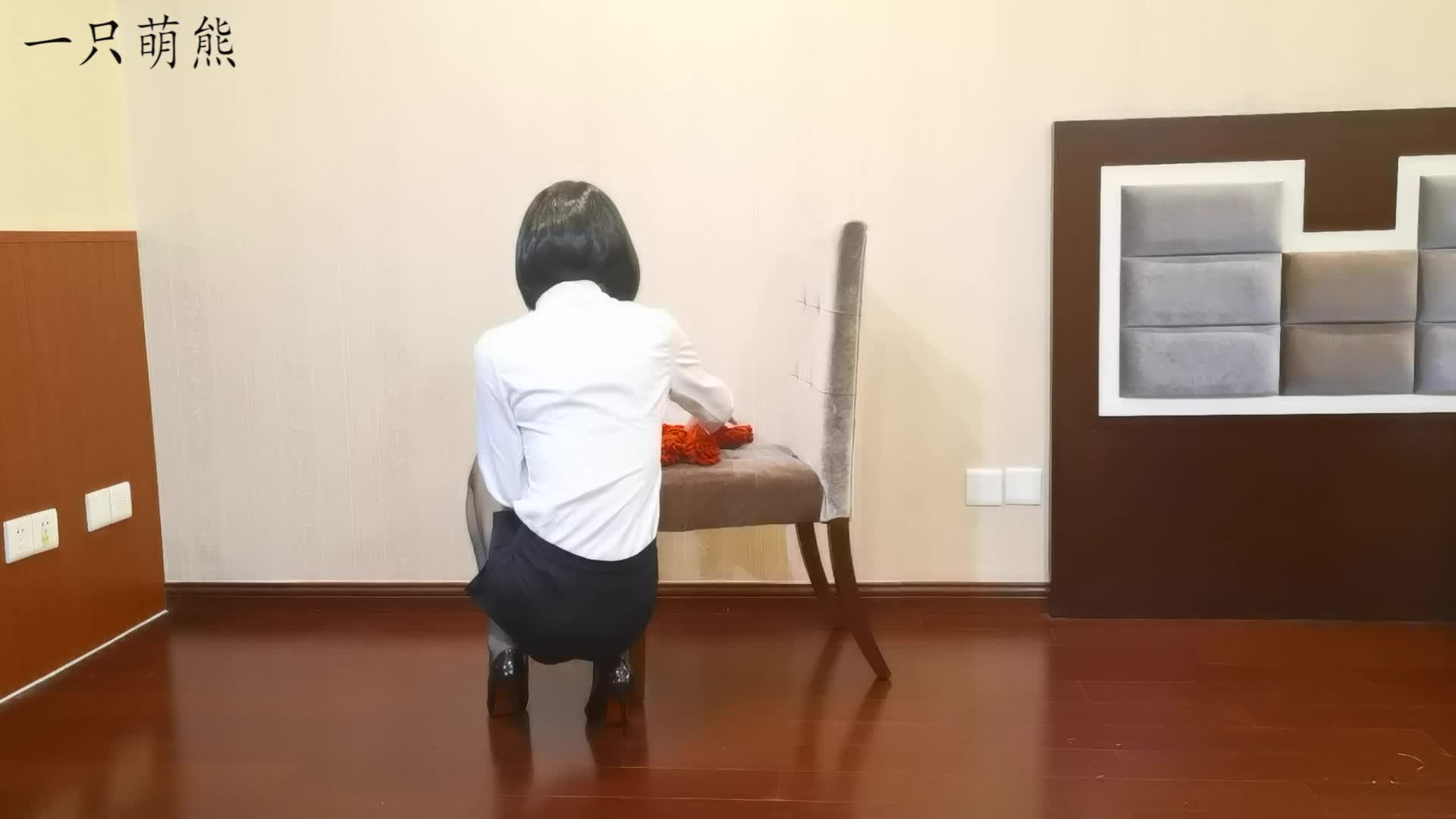 Jia Yiqi struggles in a tight bodycon skirt and pantyhose while being bound.