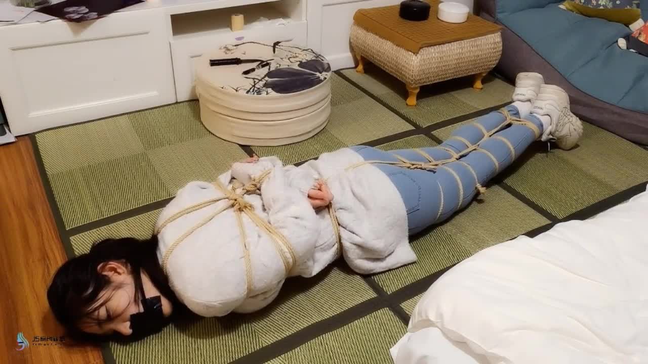 The master has gone out on business, leaving a camera to see how the slave girl spends her time alone at home. Her legs are bound, unable to stand up, she can only lie on the bed, twisting in agony, her face flushed with shame. The master has prepared a surprise for her, a plastic bag for breath play. She struggles on the bed, gasping for air, and the master can't help but laugh at her, saying how cute she is when she's desperate. Before long, the girl, bound tightly with ropes, struggles fiercely, crying, her legs kicking, drooling, her face contorted in desperation. She finally succumbs, unable to move, and the master exclaims how adorable she looks in this state!