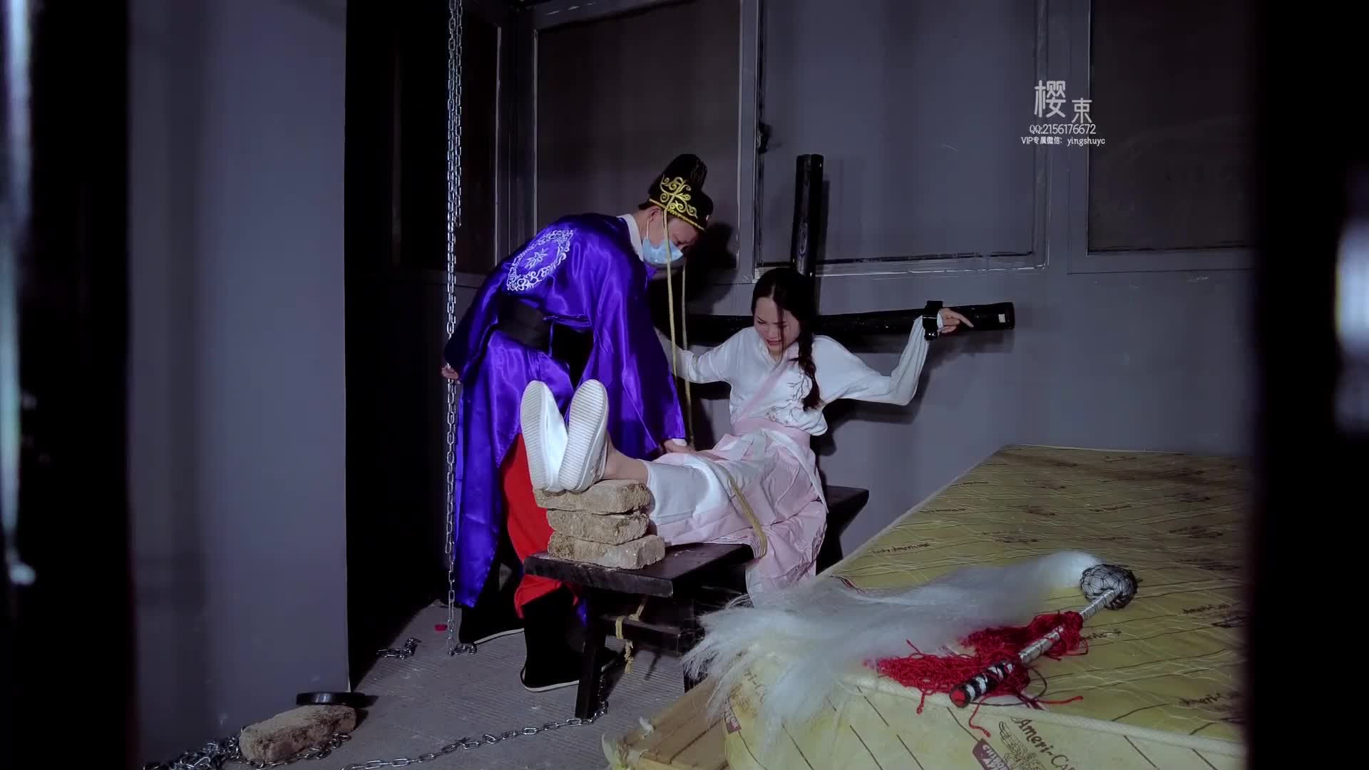 The collaboration between Leng Shao and Meng Xiong where Leng Shao and Meng Xiong engage in a tied-up and electrostimulation session. After Leng Shao was bullied to tears by Meng Xiong last time, Leng Shao enters revenge mode, tying Meng Xiong in a Japanese-style leg bind. Just after binding, Leng Shao eagerly attempts to undo Meng Xiong's self-bind, but fortunately, Bei Niang intervenes in time, stopping Leng Shao and binding her too. Both are then tied together and subjected to electrostimulation. In the end, Leng Shao can't bear it and cries out loudly, with tears streaming down her face, making her look pitiful and heart-wrenching.