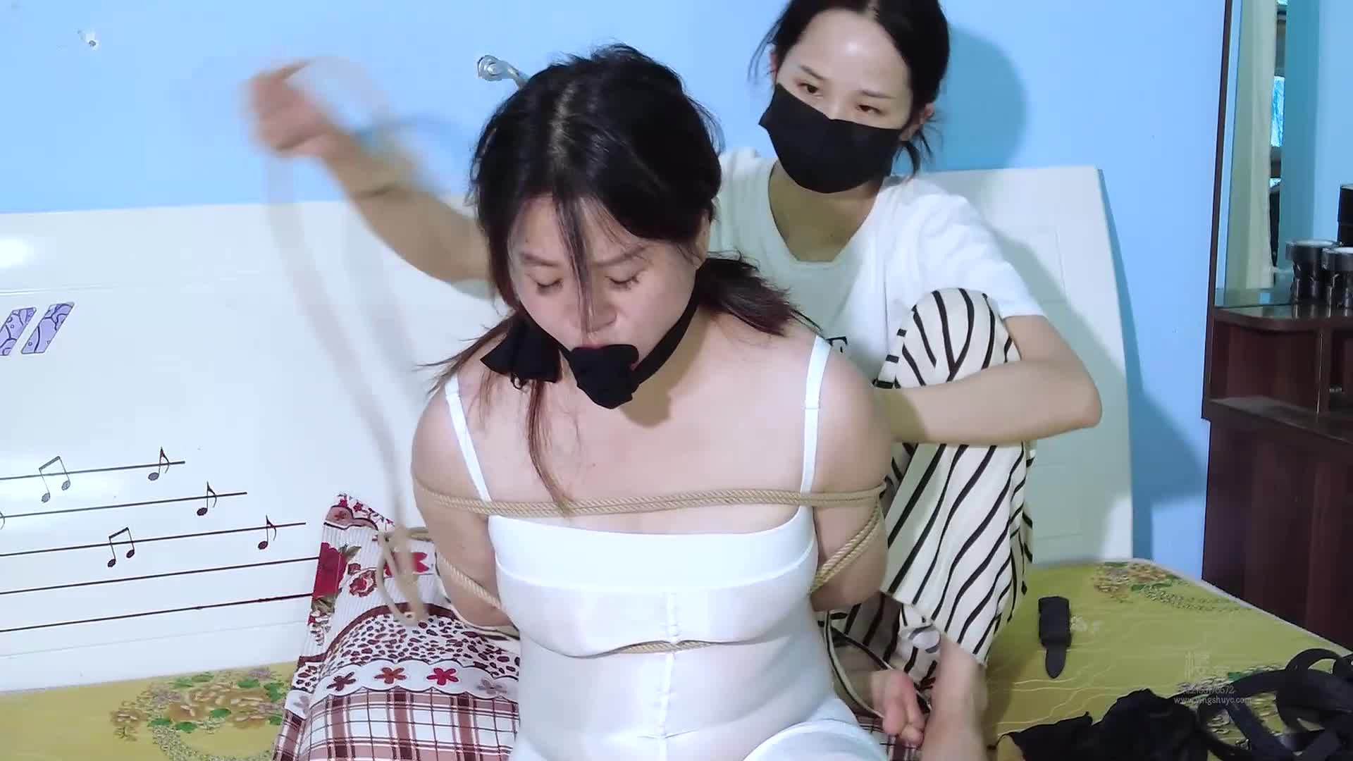 Tangyuan's leg hugging bondage and kneeling bondage on the bed by Shalang Manufacturing