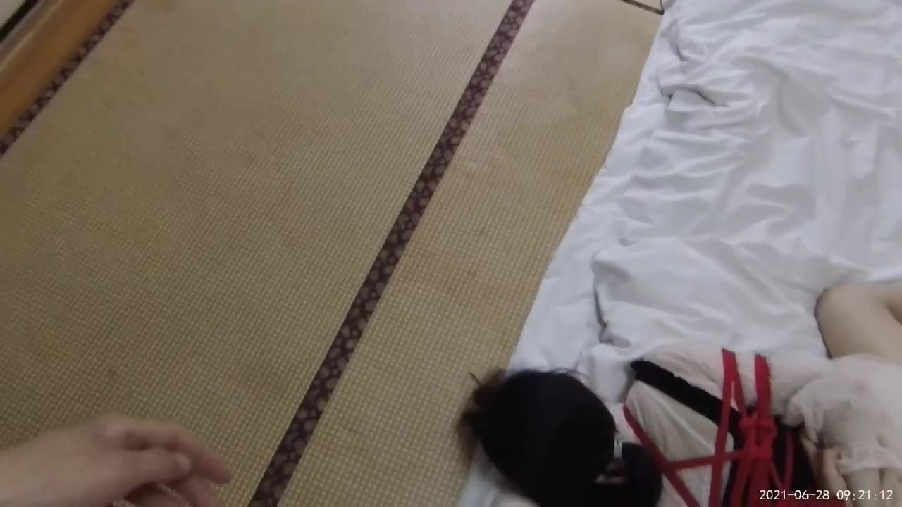 The scene begins with a girl in Hanfu wrapped tightly in a satin quilt, struggling for about 5 minutes. Then, the quilt is removed to reveal a Hanfu beauty tied up, blindfolded, and gagged with white stockings. She is then helped to stand under a frame, where she is whipped for 10 minutes, during which the white stockings gag is replaced with a pink ball gag. In the third part, her leg ropes are untied, one leg is suspended, electrodes are attached, a vibrating egg is inserted, and clamps are added, lasting about 18 minutes. The intensity of the vibrating egg is increased during this time, with close-ups of different parts, the ball gag, and drooling.