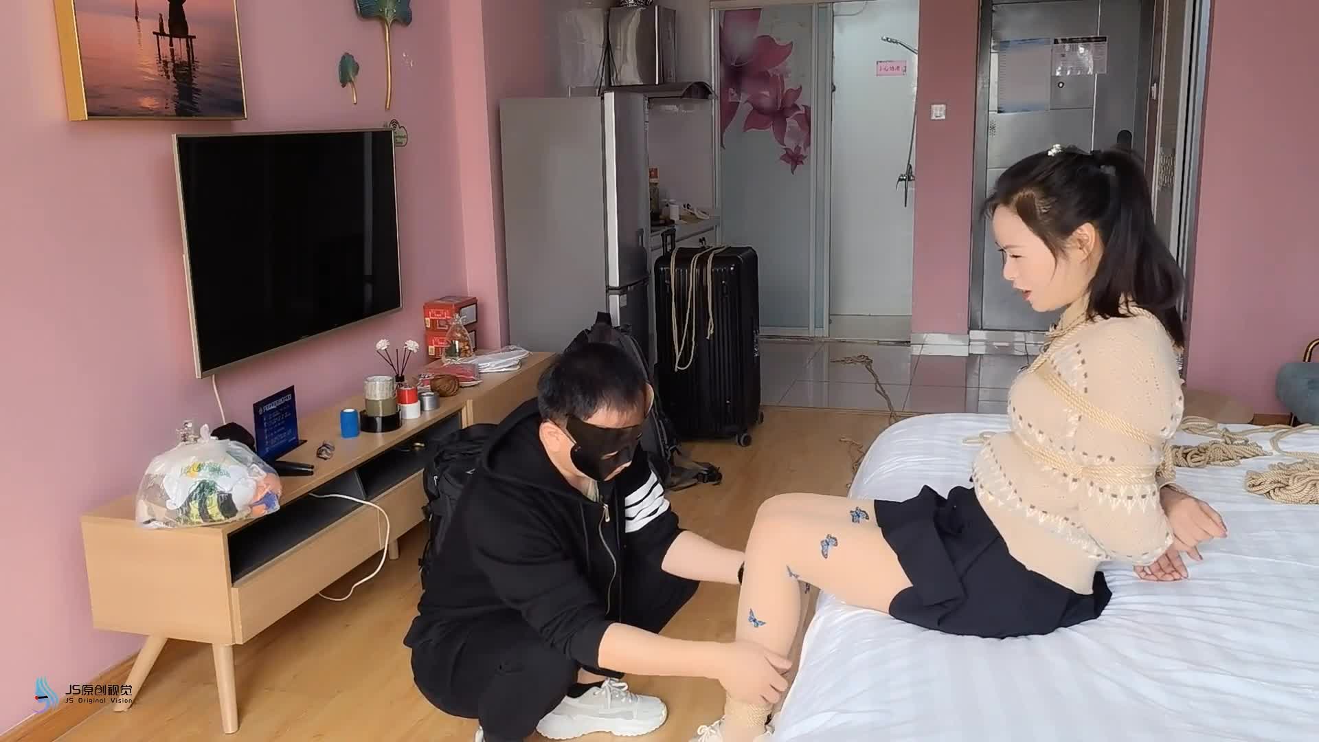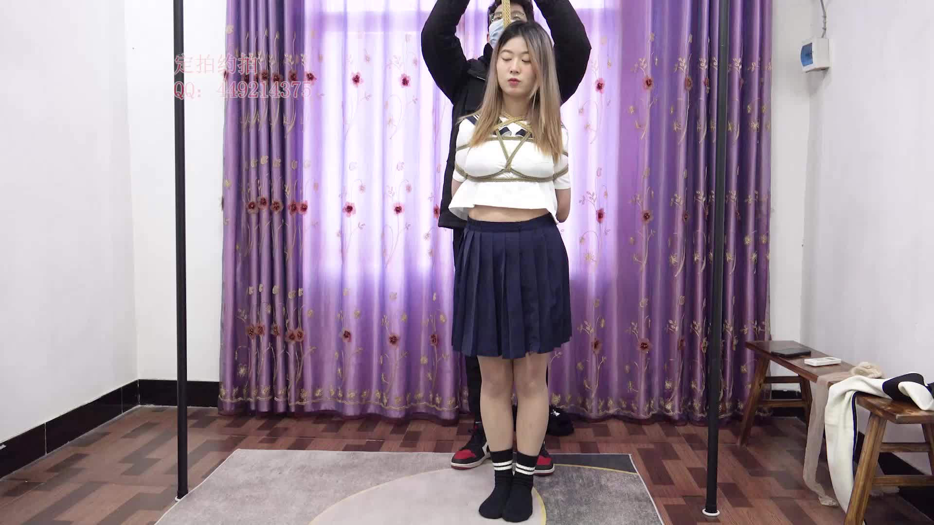 A cute little loli named Wenwen, dressed in a JK outfit, tried out bondage for the first time after meeting on the subway. She was bound in Japanese style, gagged, collared, and with ankle cuffs, unable to struggle much. Eventually, she was tied to a pillar and subjected to TK torture. She looked so shy, trying not to make noise for fear of attracting attention, which was very adorable.
