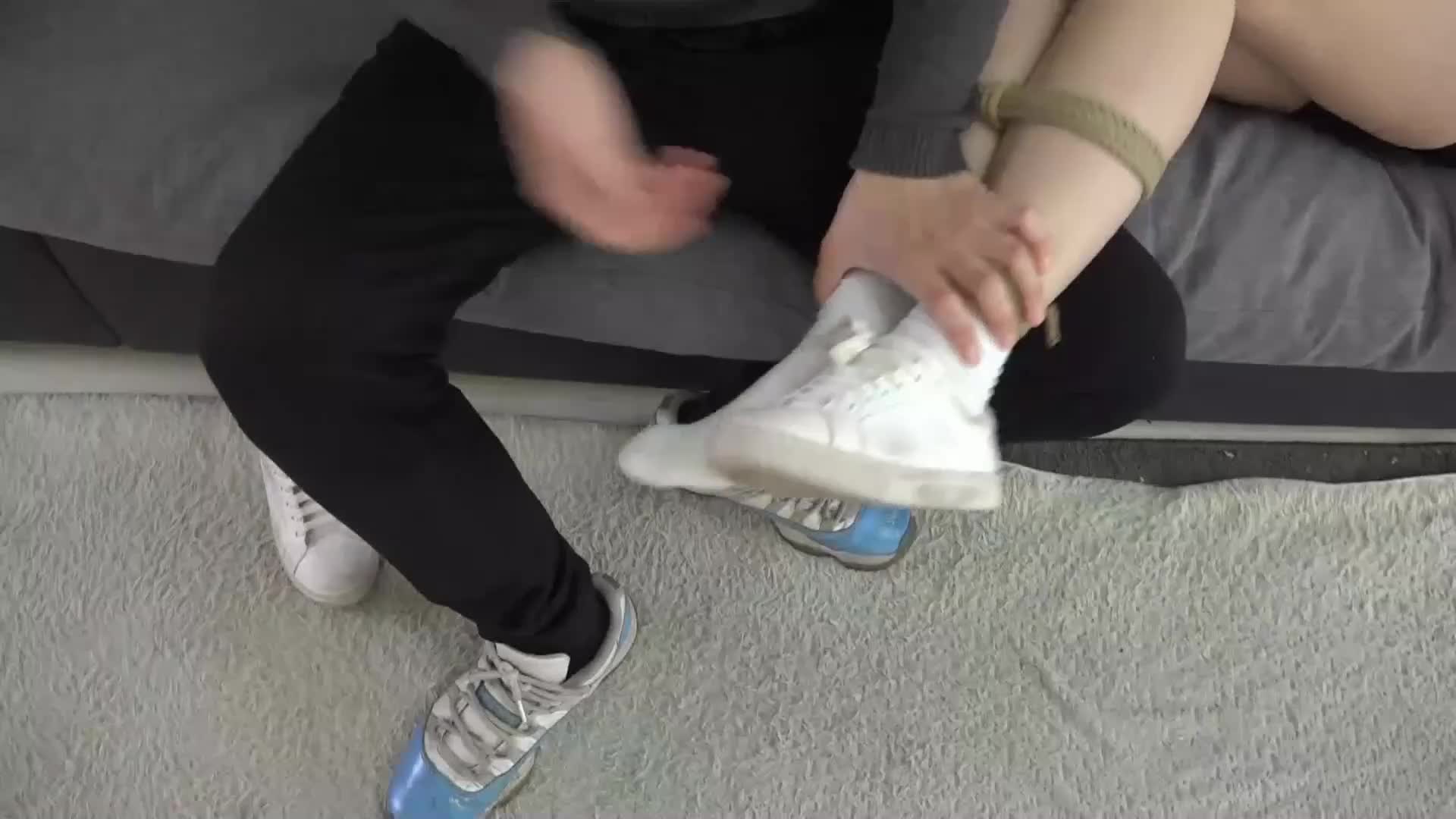 Yingying, the foot play master, is gagged with her own smelly cotton socks in this deep love scenario.