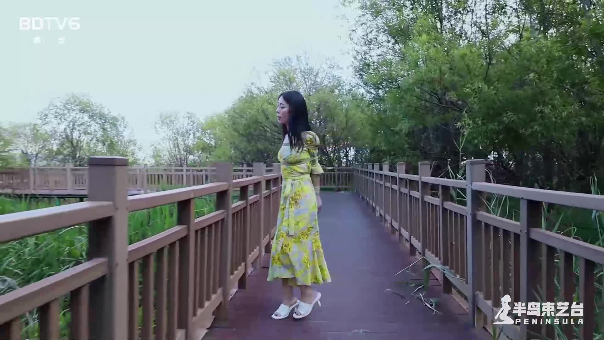 In the beautiful Cangshan Erhai Scenic Area, Taotao is wearing a lovely yellow floral dress, strolling on the wooden bridge, enjoying the tranquility of nature.