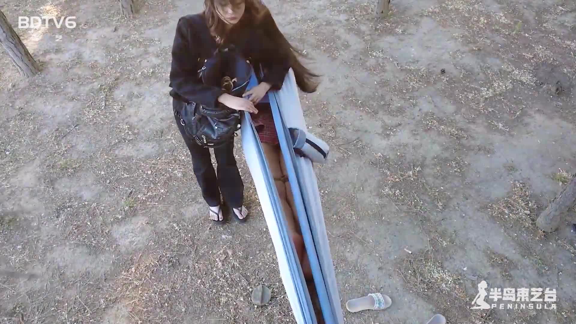 【Peninsula Bondage Stage】【Outdoor】【Xima】YT1562 The eerie scenery beside a busy highway. Setting up a hammock next to a bus stop and only letting Xima's head stick out, what kind of scene is this? It's kind of creepy.