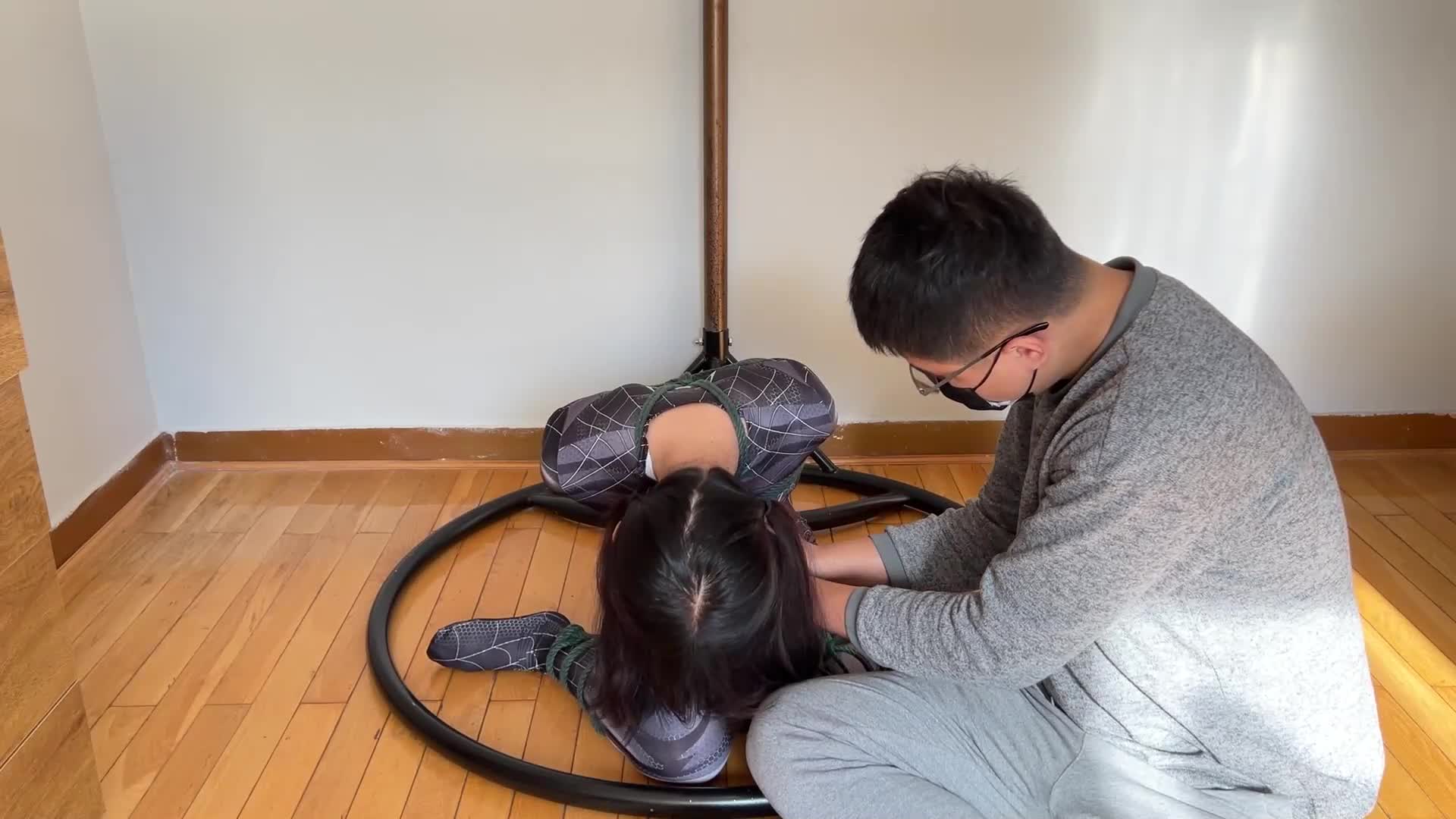 Gugu Jing, Chacha in white stockings, hardcore V-shaped extreme hogtie!