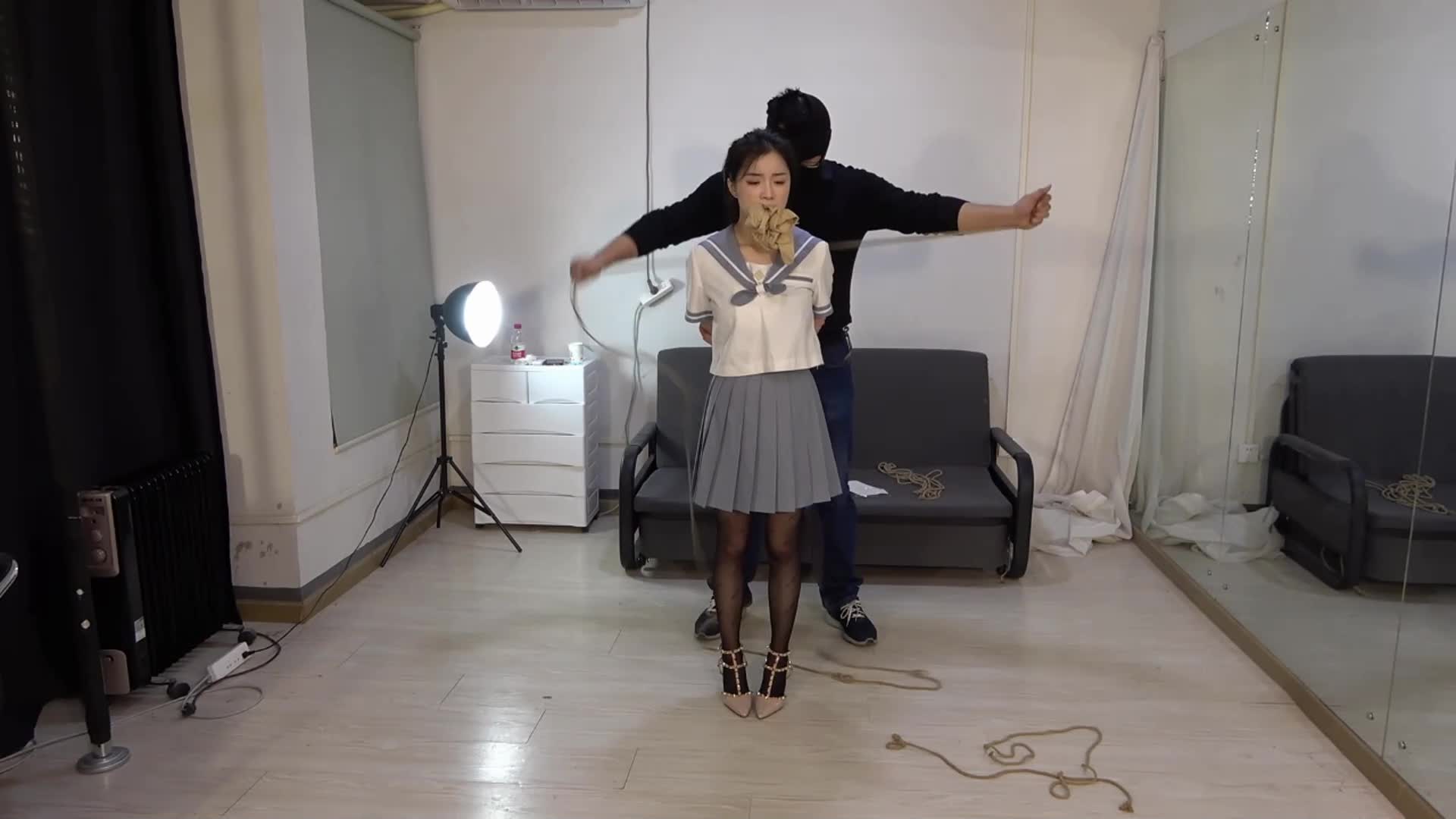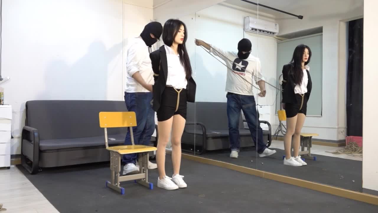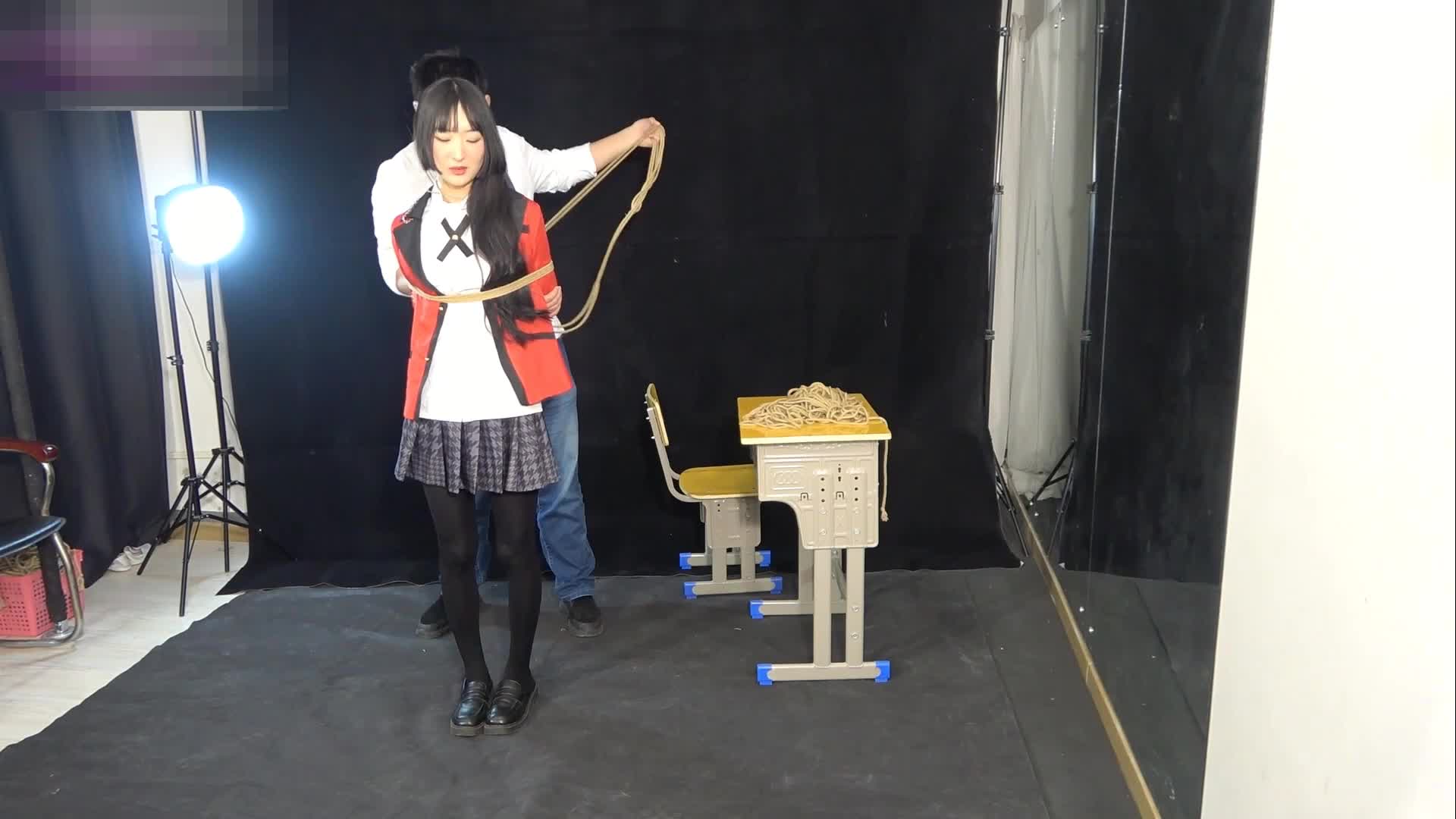 Shanshan in a schoolgirl uniform is tied up and left alone